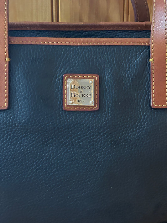 Dooney and Bourke Charleston Pebble Leather Black Brown Tote Purse Handbag