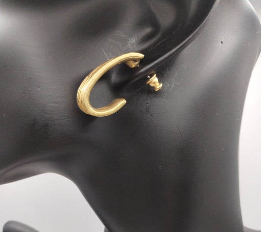 Vintage Signed Monet Brass Bronze Tone Patterened Hoop Pierced Earrings