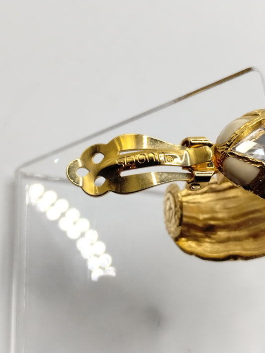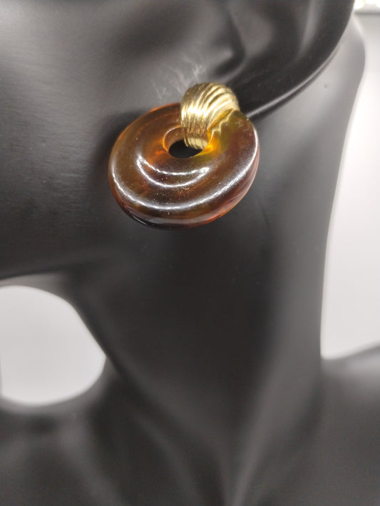 Vintage 80s Faux Tortoise Shell Gold Tone Pierced Statement Earrings