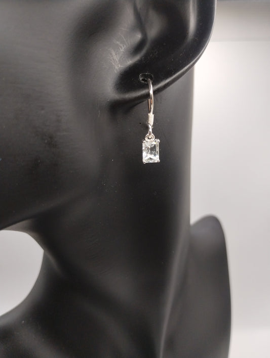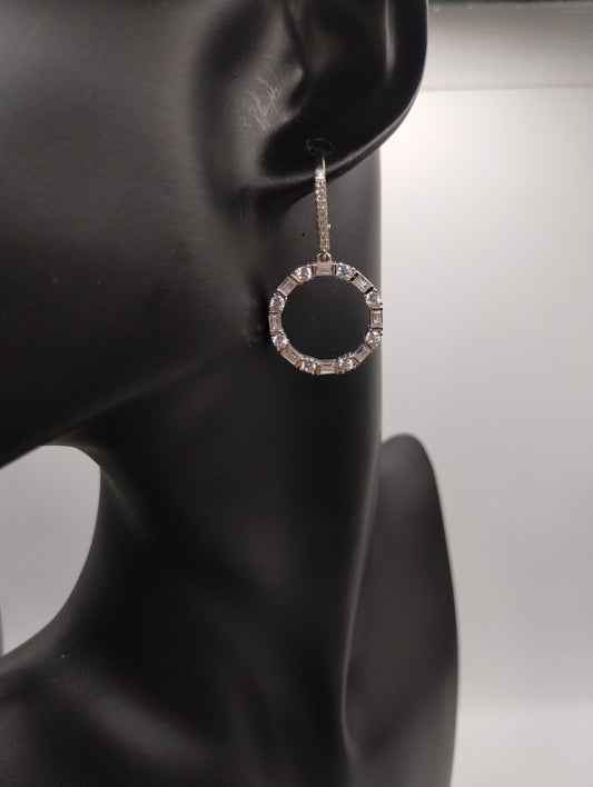 Sterling Silver 925 Dangly Round Emerald Cut Rhinestone Drop Earrings