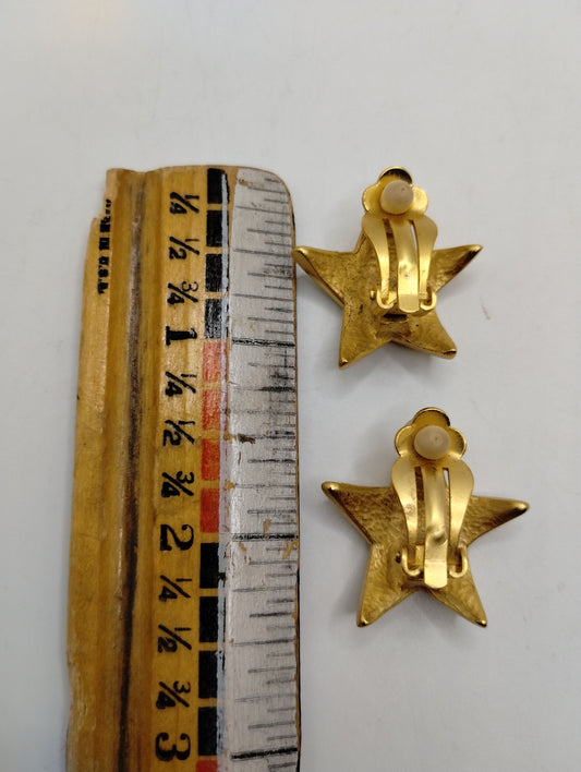 Vintage Brushed Gold Tone Star Shaped Clip On Earrings