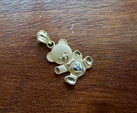14k Yellow White Diamond Accent Teddy Bear Necklace Pendant Charm