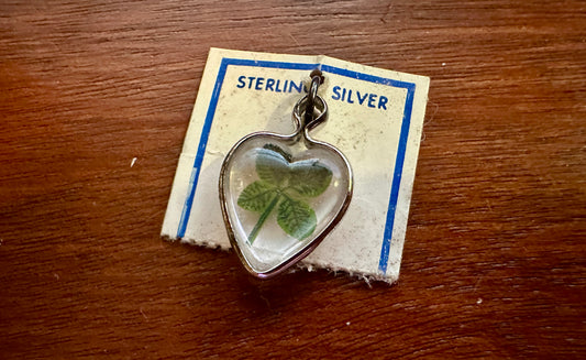 Vintage Sterling Silver 925 Heart Shaped Four Leaf Clover in Lucite Charm