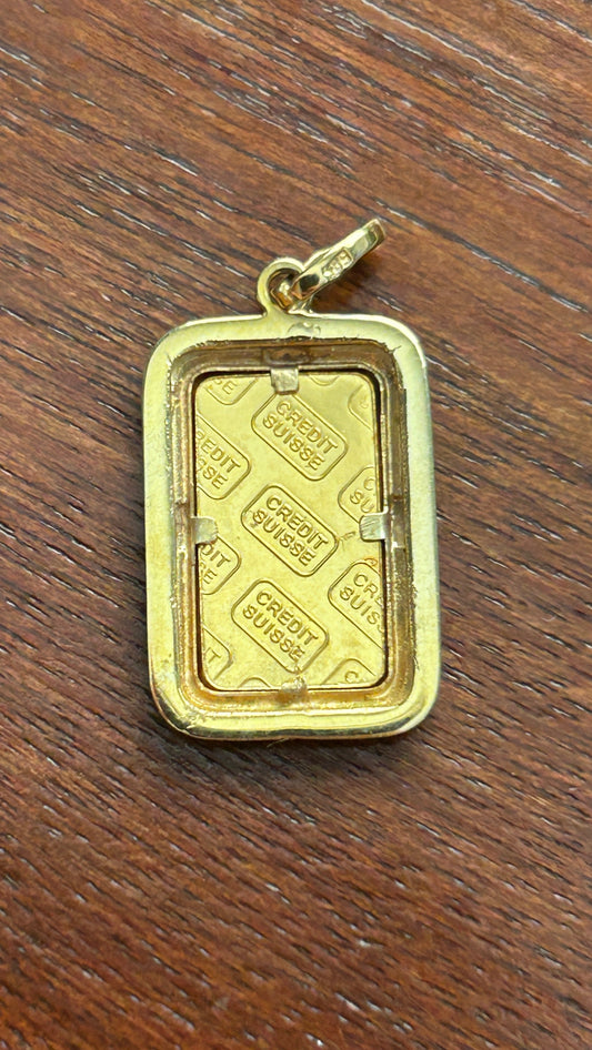 1g Fine Gold 999.9 Credit Suisse Bar 14k Yellow Gold Bail Necklace Pendant