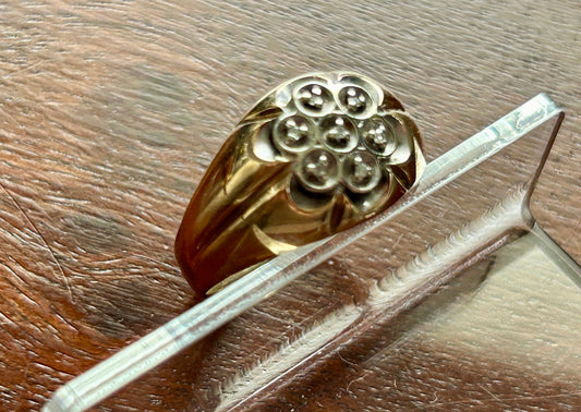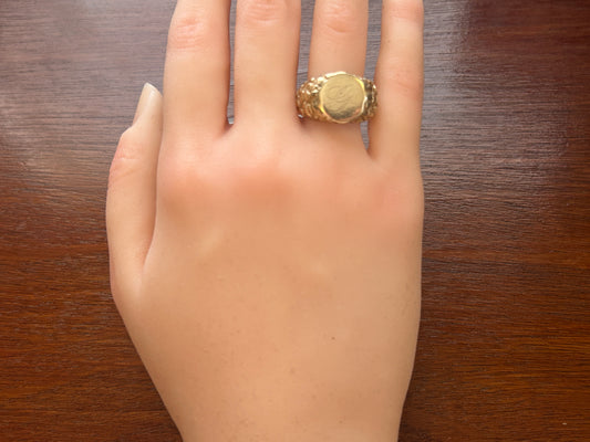 10k Yellow Gold Mens Nugget Style Monogrammed Signet Ring Sz 9.25