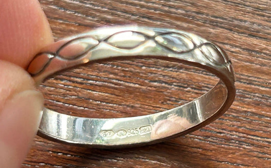 Sterling Silver 925 Band Ring Etched Line Design Sz 9.5