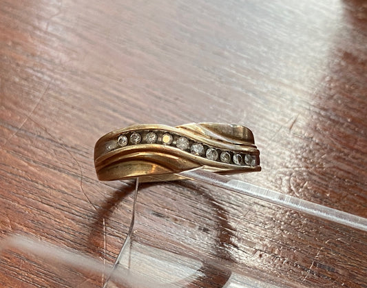 10k Yellow Gold Channel Set .15ctw Diamond Ring Sz 9.75