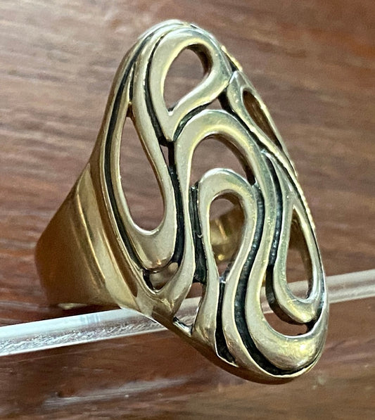 Sterling Silver 925 Swirl Design Large Face Ring Sz 9