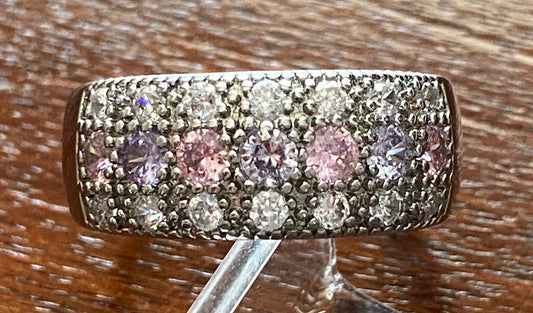 Sterling Silver 925 Pastel Pink Purple White CZ Ring Sz 9