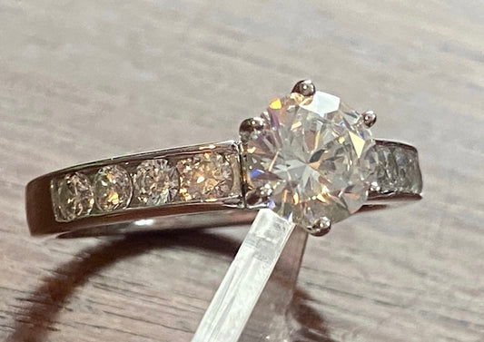 Sterling Silver 925 CZ Channel Set Round Solitaire Engagement Ring