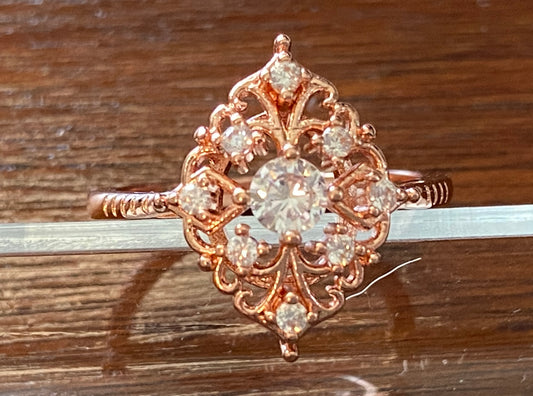 Rose Gold Plate Sterling Silver vintage Style CZ Ring Sz 9