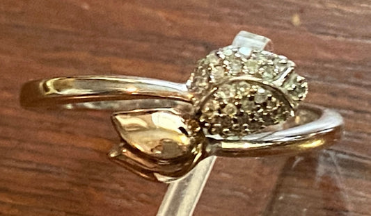 Sterling Silver 925 Gold Wash Pave Diamond Bypass Rose Flower Ring Sz 9