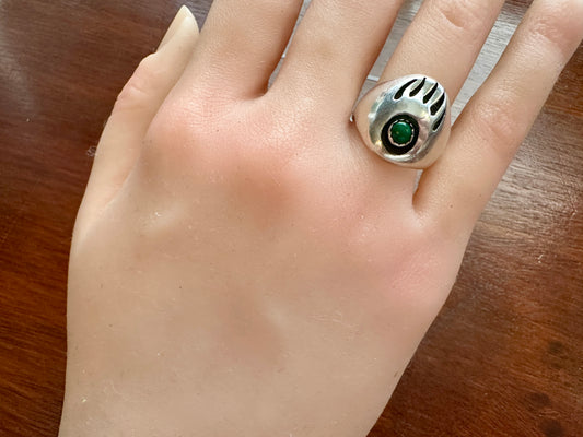 Signed Navajo Silver Green Turquoise Bear Track Ring Sz 7.75