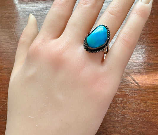 Old Pawn Sterling Silver 925 Turquoise Cabochon Ring Sz 7
