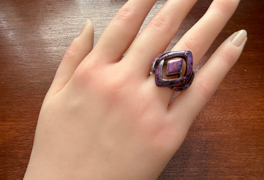Sterling Silver 925 Purple Turquoise Inlay Modern Large Ring Sz 8.75 - 9