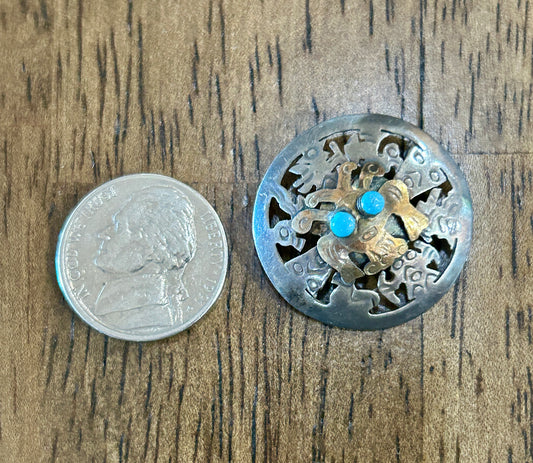 Vintage Sterling Silver 925 18k Yellow Gold Turquoise Pendant