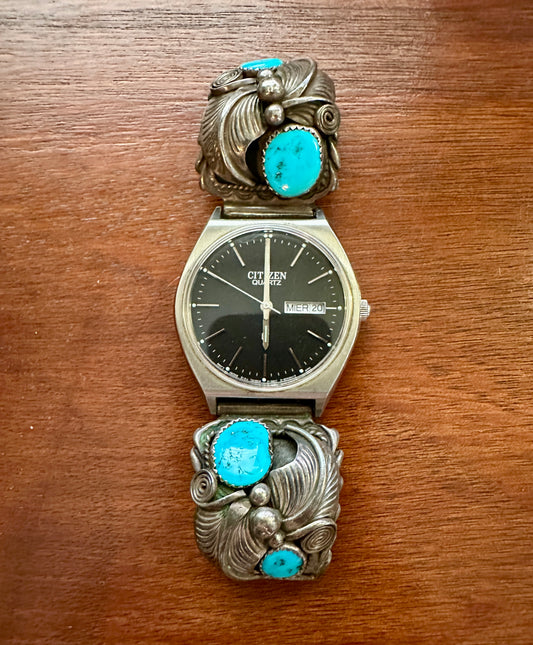 Vintage Signed Jim Yazzie Sterling Silver 925 Turquoise Navajo Watch Band