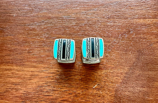 Vintage Signed Baer & Wilde Kum-A-Part Cuff Links Silver Tone Turquoise Onyx