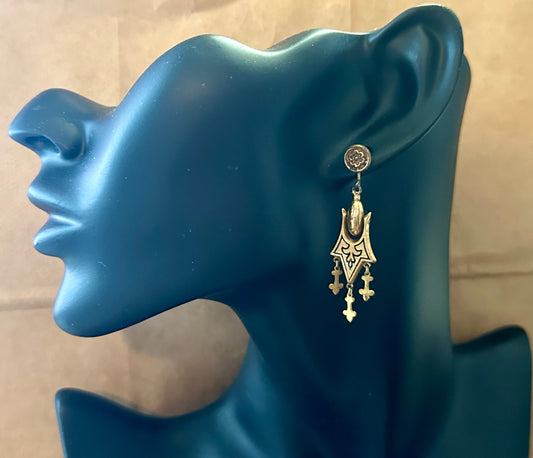 Antique Victorian Gold Filled Taille D'Epargne Black Relief Dangly Drop Earrings
