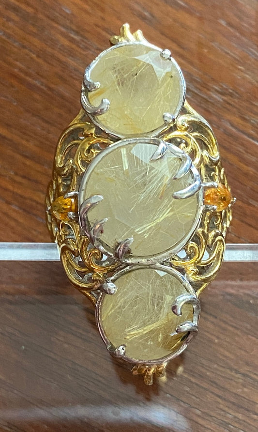 Golden Rutilated Quartz Jalisco Fire Orange Platinum over Sterling Silver Ring Sz 7
