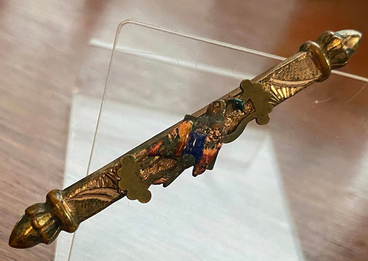 Antique Victorian Rose Gold Filled Enamel Dove Bar Brooch Pin Damage