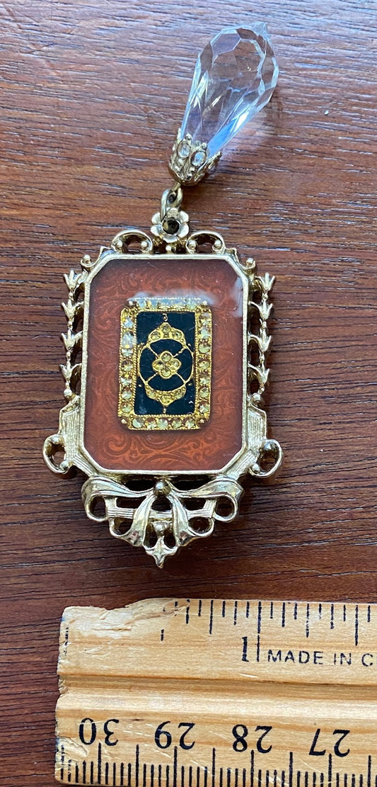 Large Vintage Victorian Revival Black Intaglio Brass Pendant Necklace