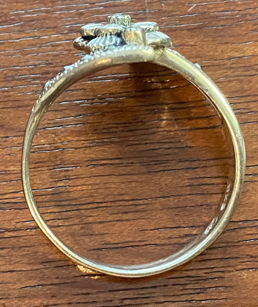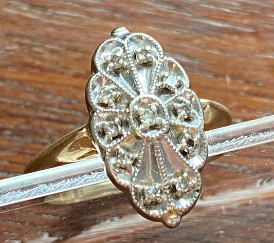 Vintage 14k White & Yellow Gold Milgrain Diamond Cluster Ring Sz 4.75