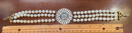 Vintage Victorian Style Multistrand Faux Pearl Medallion Choker Necklace