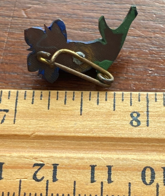 Vintage Antique Painted Carved Wood Flower Brooch Pin