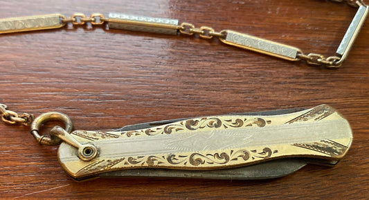 Victorian BB Co Pocket Knife Gold Filled Chain Two Tone Chasing